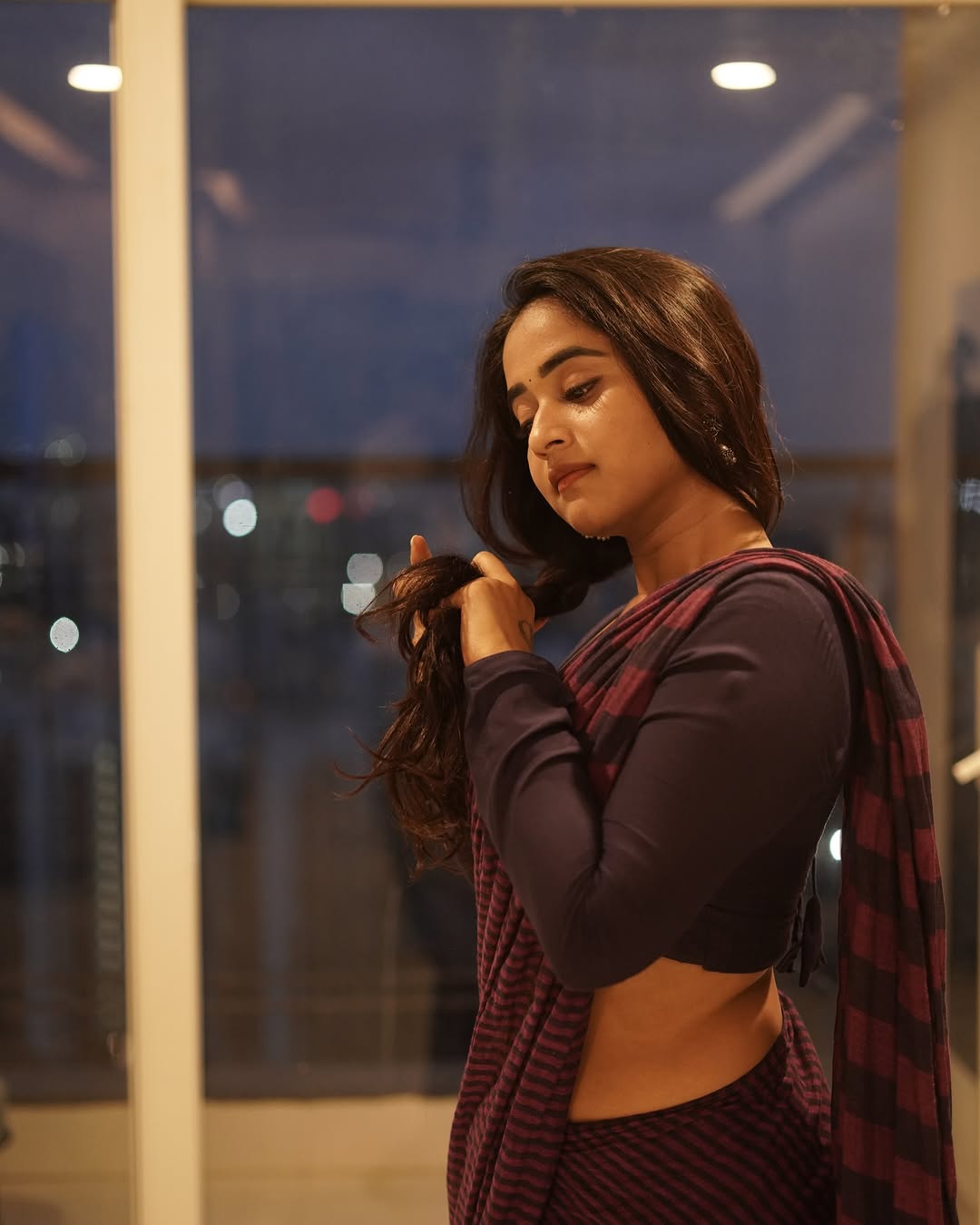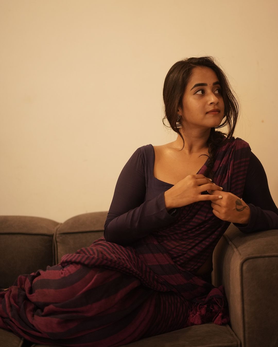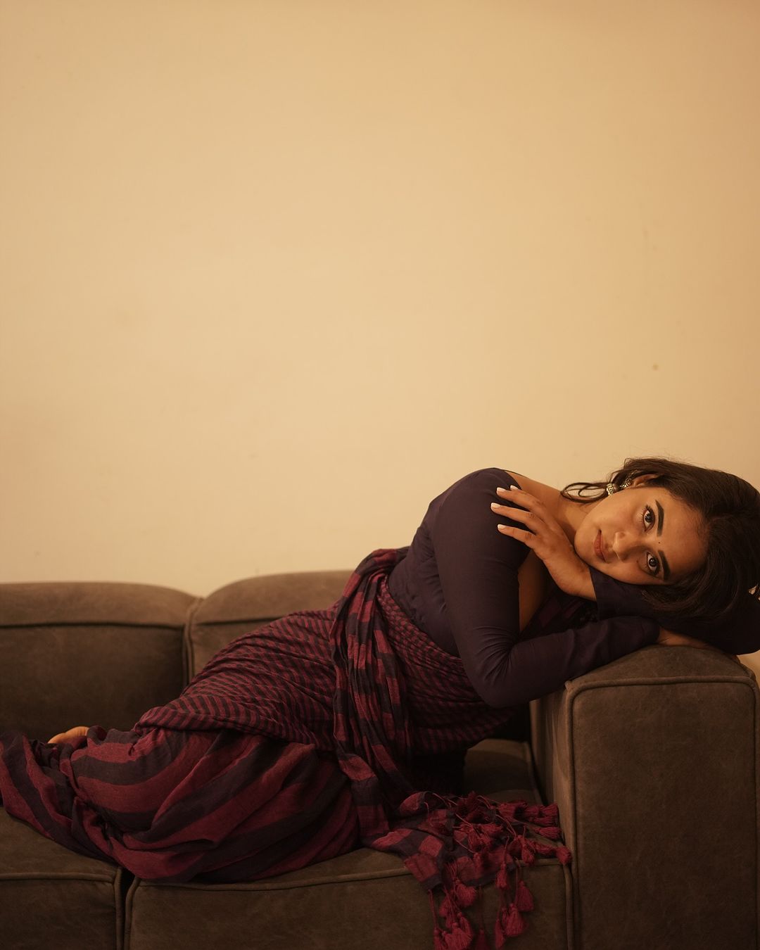 డార్క్ చాక్లెట్ కలర్ శారీ కట్టి మ్యాచింగ్ ఫుల్ హ్యాండ్స్ బ్లౌజ్ వేసి సోయగాలు పోతుంటే అబ్బో ఆ అందం వర్ణించతరమా? అన్నట్టుగా ఉన్నాయి ఫోటోలు.Photo Credit Instagram