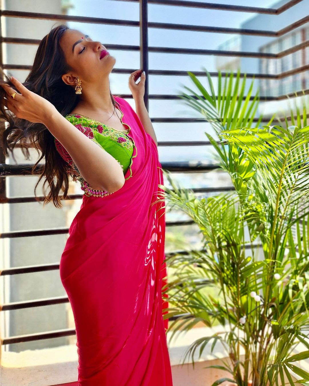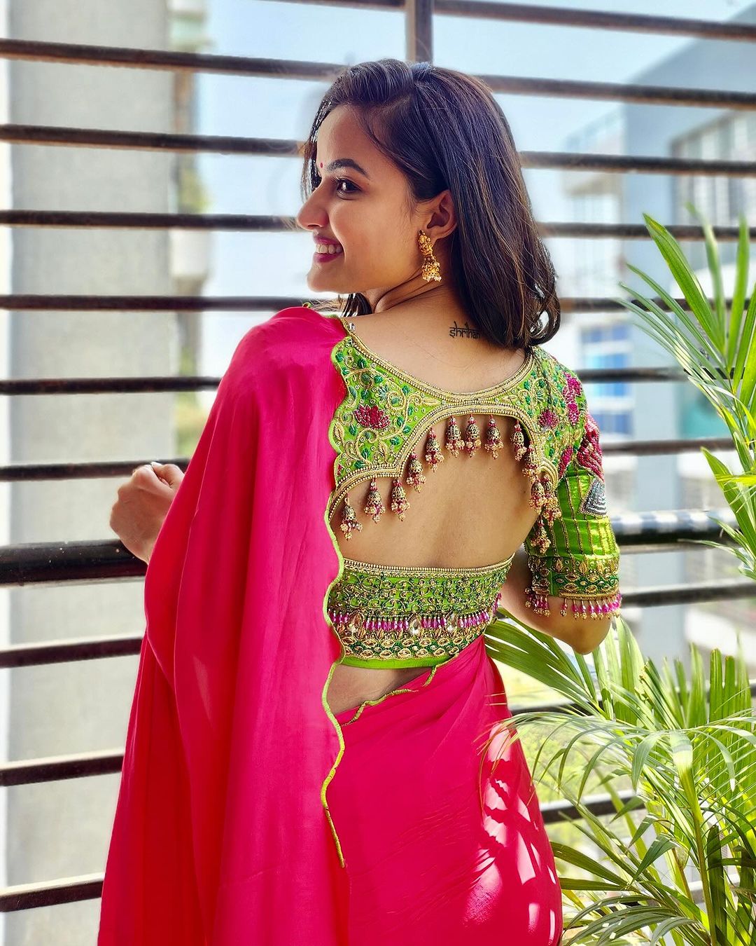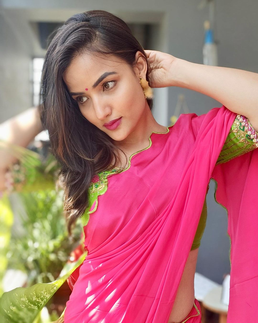 తాజాగా సిరి హన్మంత్ పింక్ శారీ, గ్రీన్ కలర్ బ్లౌజ్ ధరించి ఫోటో షూట్ చేసింది. శారీలో సిరి చాలా అందంగా కనిపిస్తుంది. చీరలో వయ్యారాలు ఒలకబోస్తూ కుర్రకారుకి చెమటలు పట్టిస్తోంది. క్యూట్ గా స్మైల్ చేస్తూ కనిపిస్తున్న సిరి హన్మంత్ ఫోటోలు కళ్ళు తిప్పుకోనివ్వకుండా చేస్తున్నాయి. ప్రస్తుతం ఈ జబర్దస్త్ బ్యూటీ అందాలు నెట్టింట వైరల్ గా మారాయి. Photo: Instagram